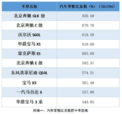 汽车零整比系数方面,通过公开市场采集各车型的配件价格(价格数据截至到3月),导入计算公式核算各车型的汽车零整比系数。在样本车型中最高的车型为北京奔驰GLK级,汽车零整比系数为830 真人百家乐,49%;最低的车型为力帆620,汽车零整比系数为157,66%。。